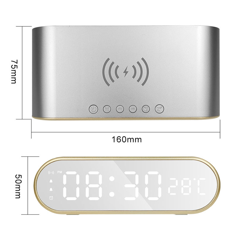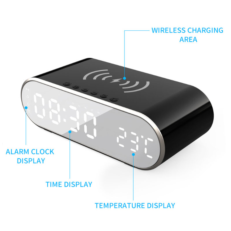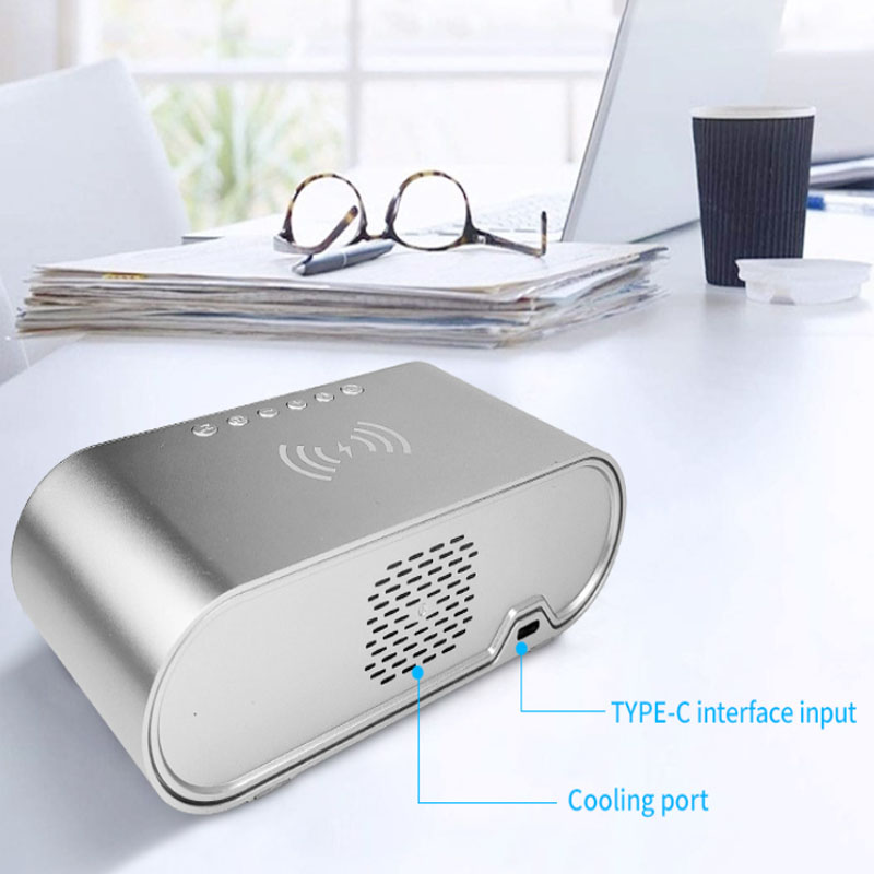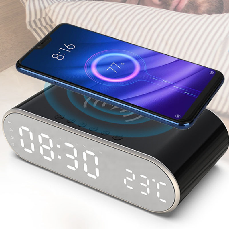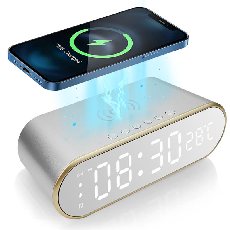 The wireless charging oval alarm clock can clearly see