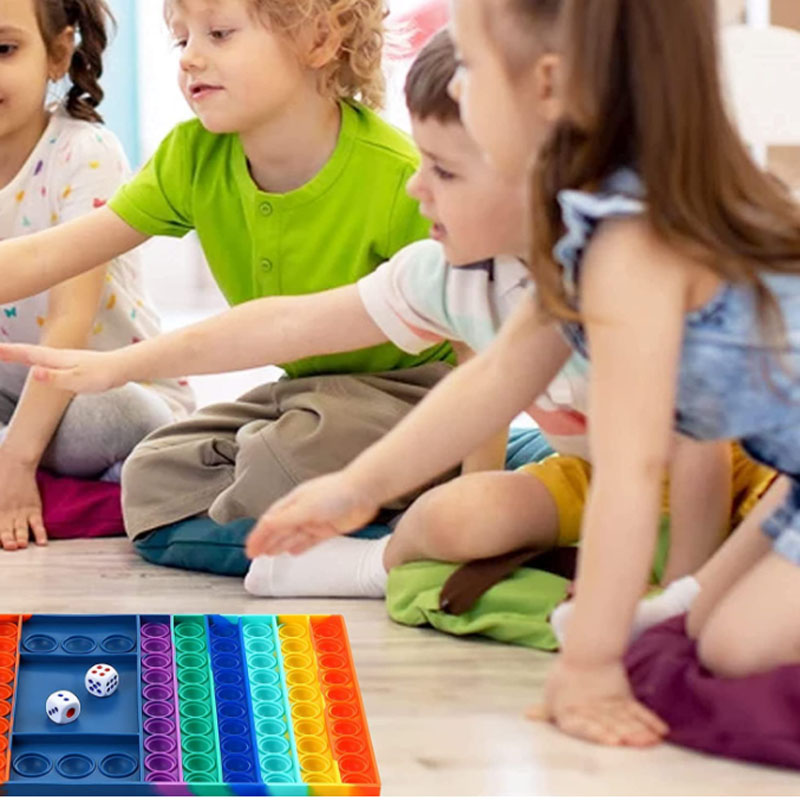Pop-it Chess Game – Players take turns pressing down POP the game board equal to the number rolled on the dice. The first one to pop all the bubbles on their side win, its simple and fun! The winner gets to unpop all the bubbles on the board for that bubble wrap satisfaction!
