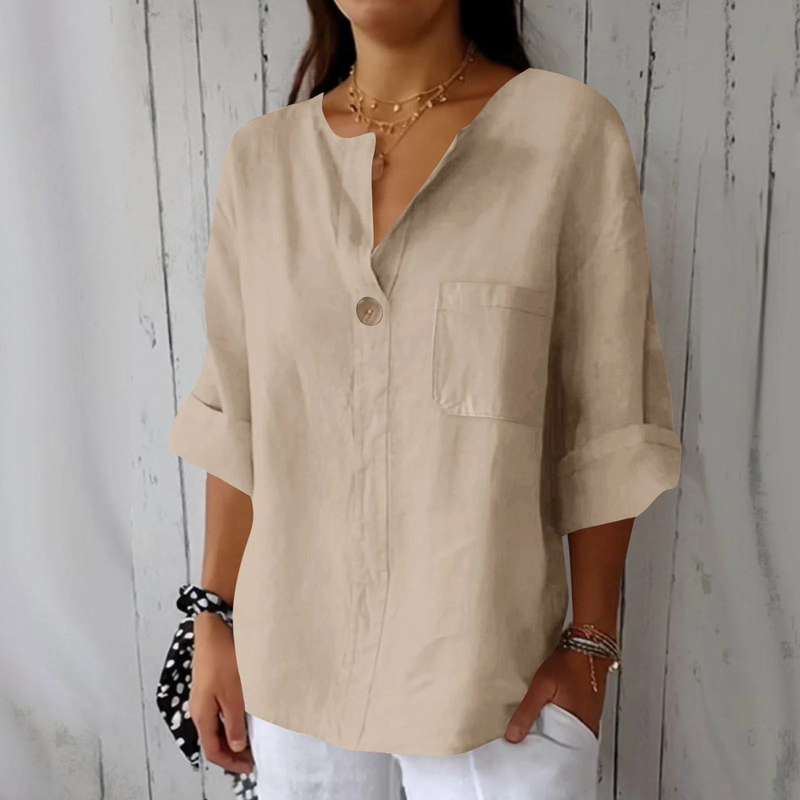 Refresh your wardrobe with the Casual V Neck Cotton Line Tops, designed for effortless style and breathable comfort. With its lightweight cotton blend and flattering V-neckline, this versatile top pairs perfectly with jeans, skirts, or shorts for an easy casual look that works for any season.