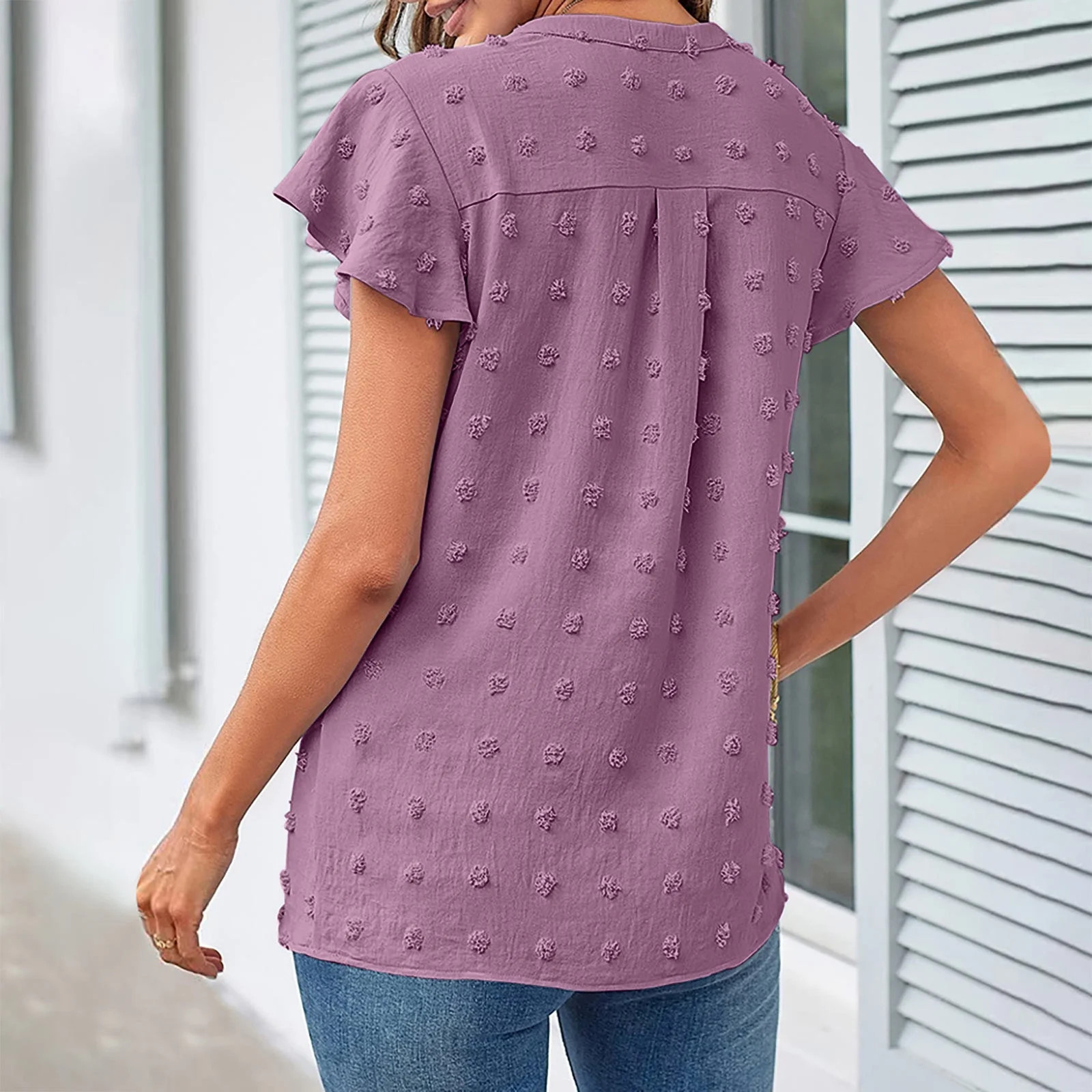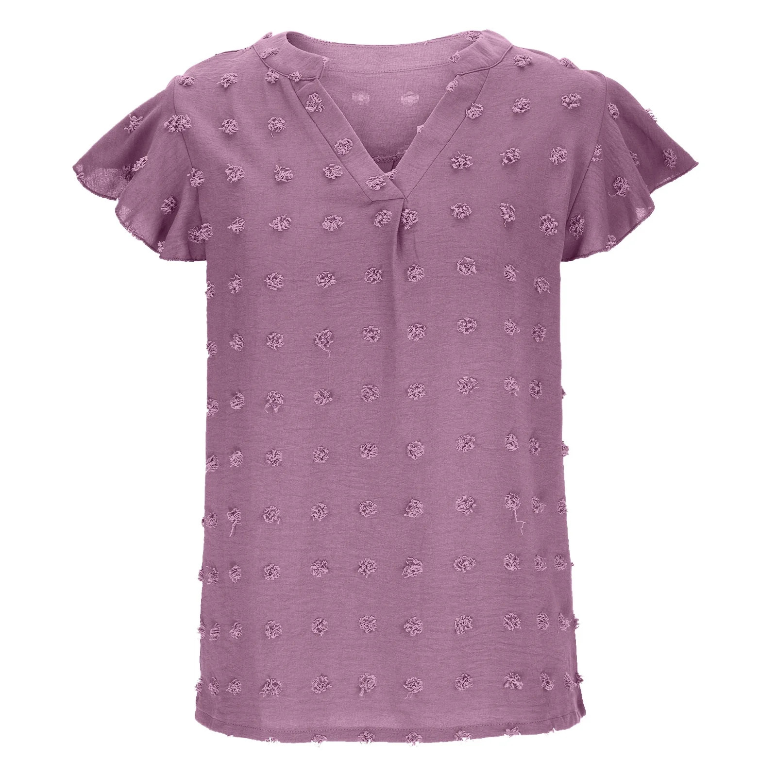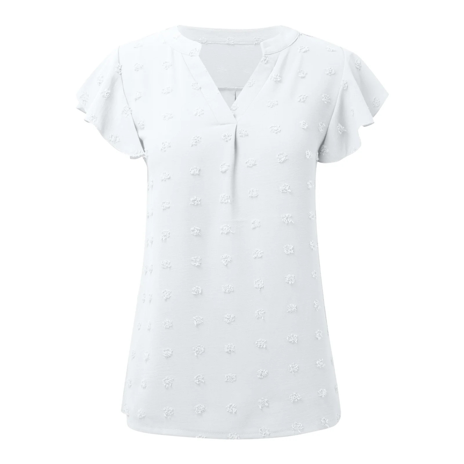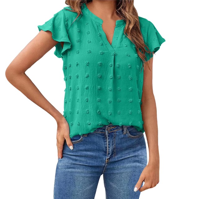 Add a touch of elegance and charm to your wardrobe with the Chiffon Fur Ball V Neck Tops,