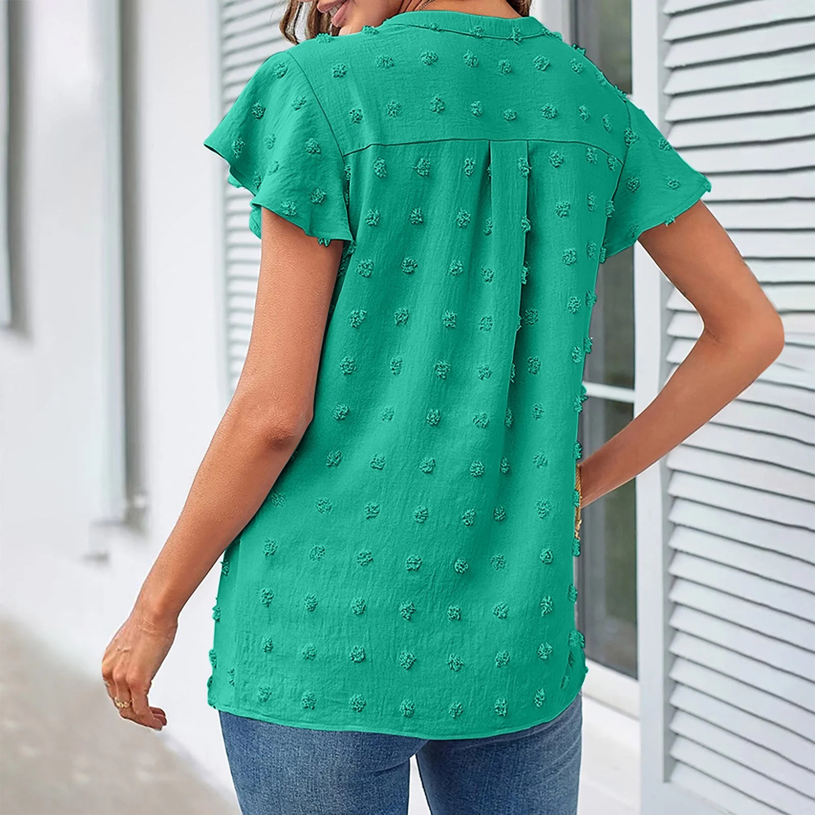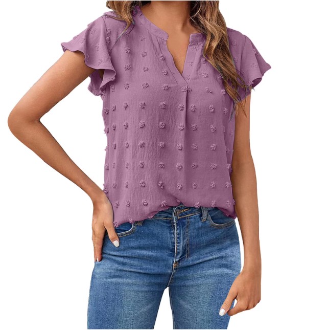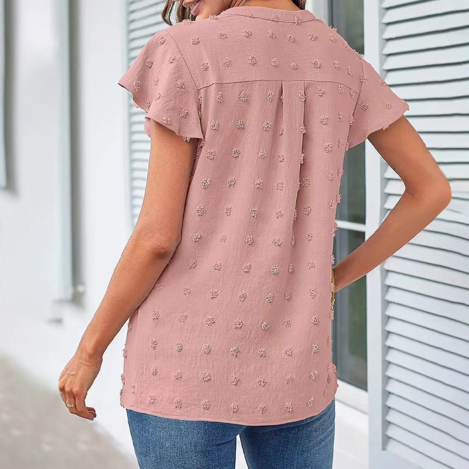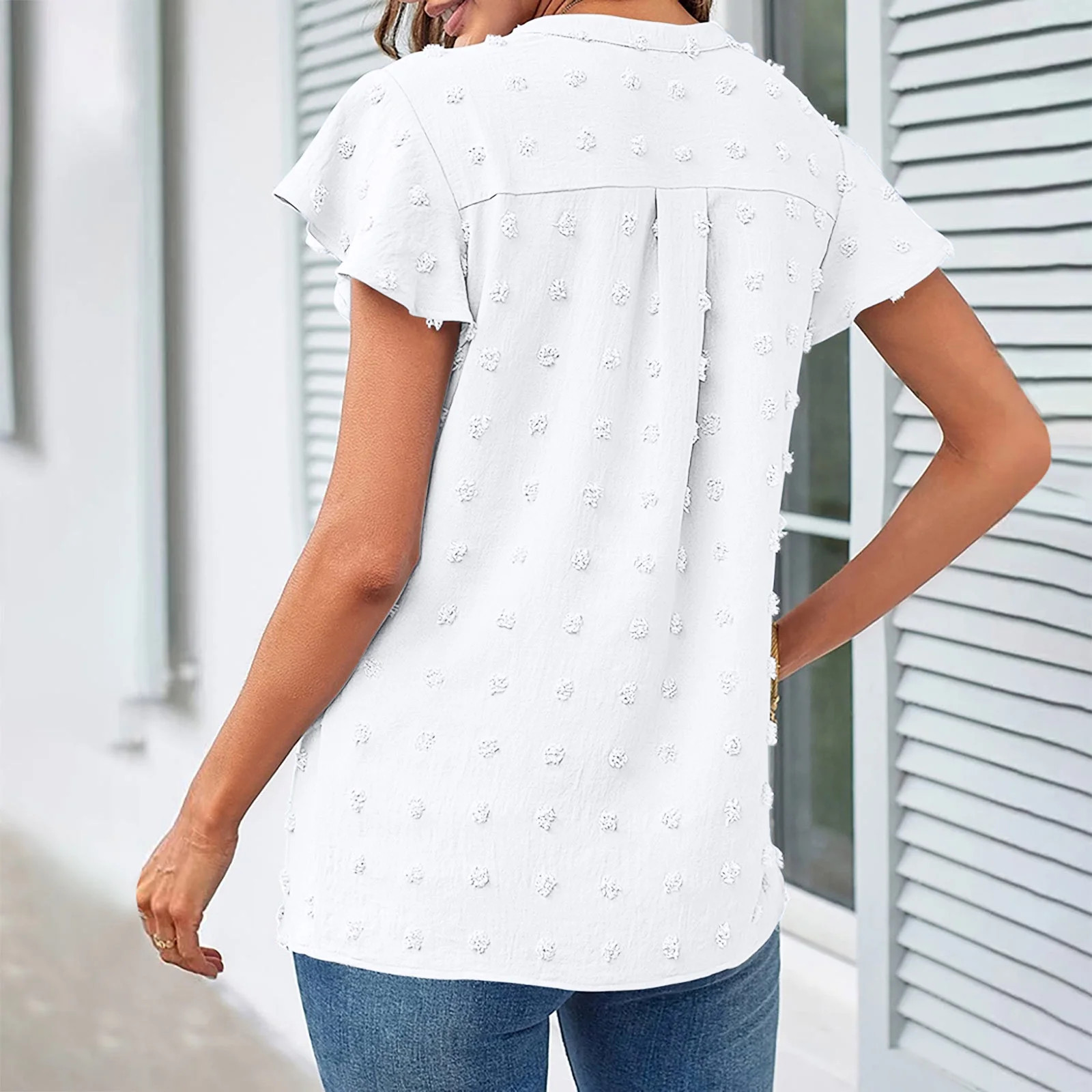 Chiffon Fur Ball V Neck Tops – Elegant, Playful & Effortlessly Chic