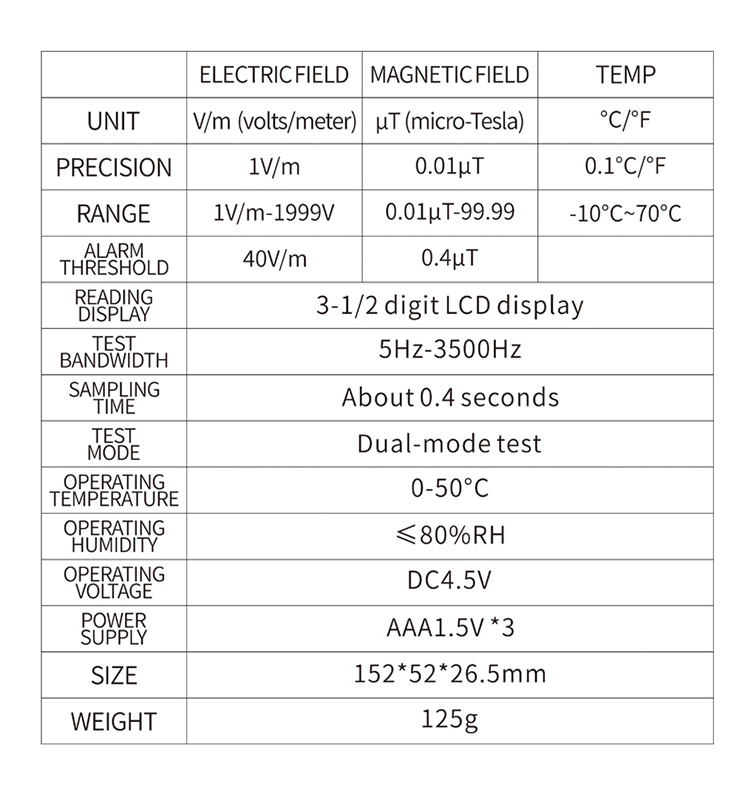 Dual-Mode Testing: Offers two test modes for versatile usage—ideal for measuring electromagnetic radiation from various sources.