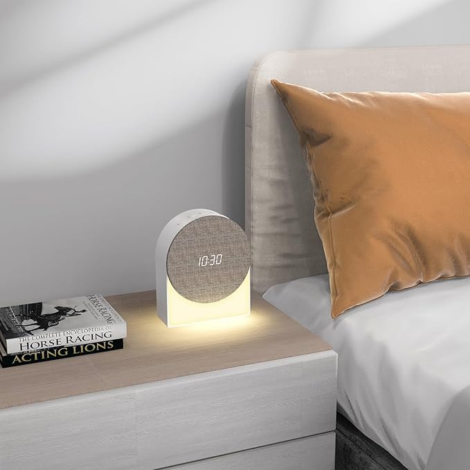 Bring calm, comfort, and functionality into your sleep routine with the SM04 Sleeping Machine. With its soft fabric-inspired design, ambient lighting, white noise, and alarm clock features, it's an all-in-one solution for relaxation and better sleep.