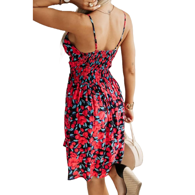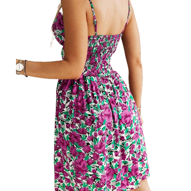 Charming Design: The Fashion Floral Mini Slip Dress features a delightful floral pattern that adds a playful touch to your summer wardrobe. The mini length and slip style create a relaxed yet stylish look, perfect for warm weather.