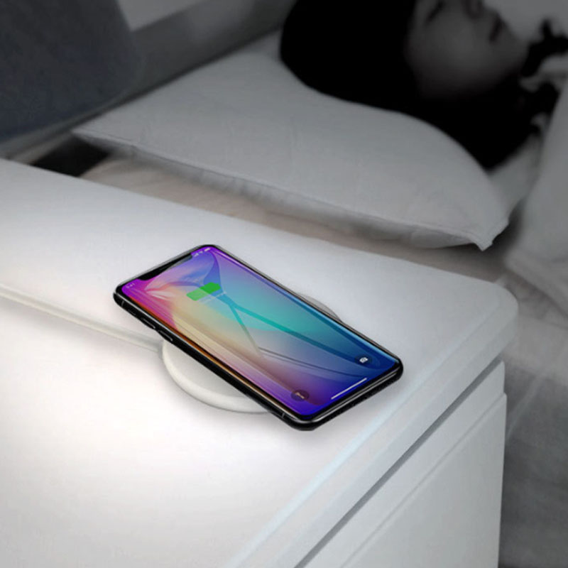 QI Wireless Charger Compatible with iPhone and Samsung Charge the phone at home or office with this space-saving