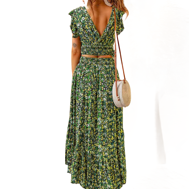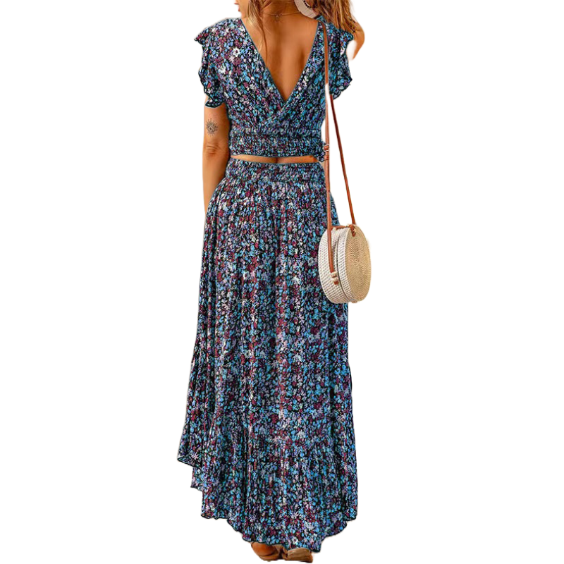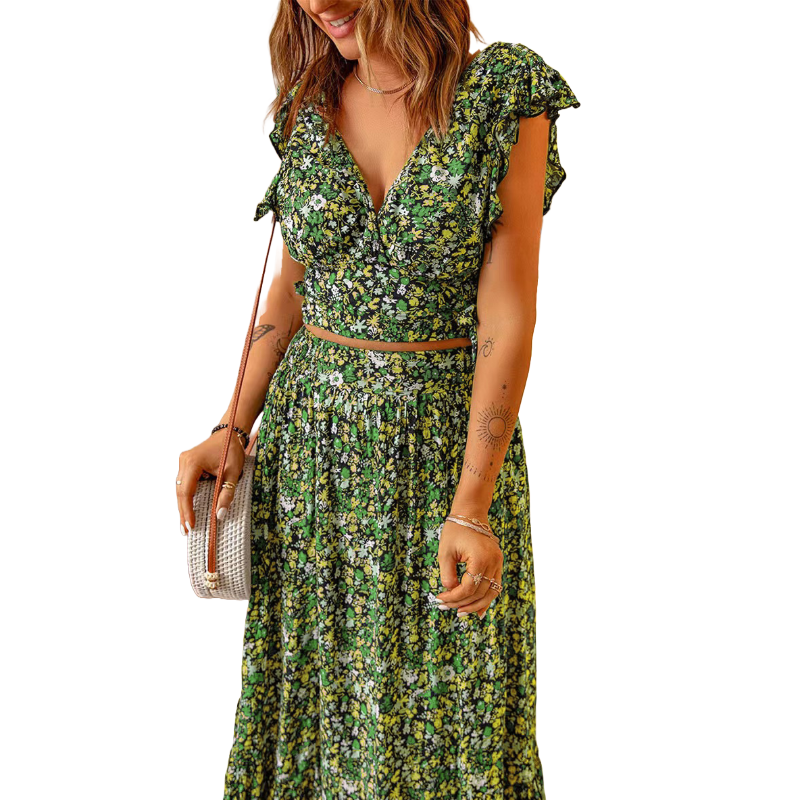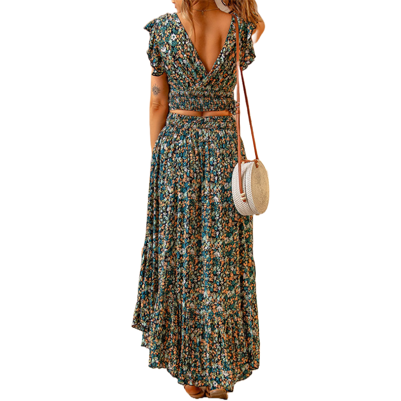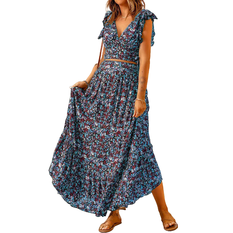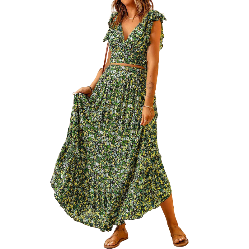 this Floral Long Skirt Sleeveless Tops Suit Set is
