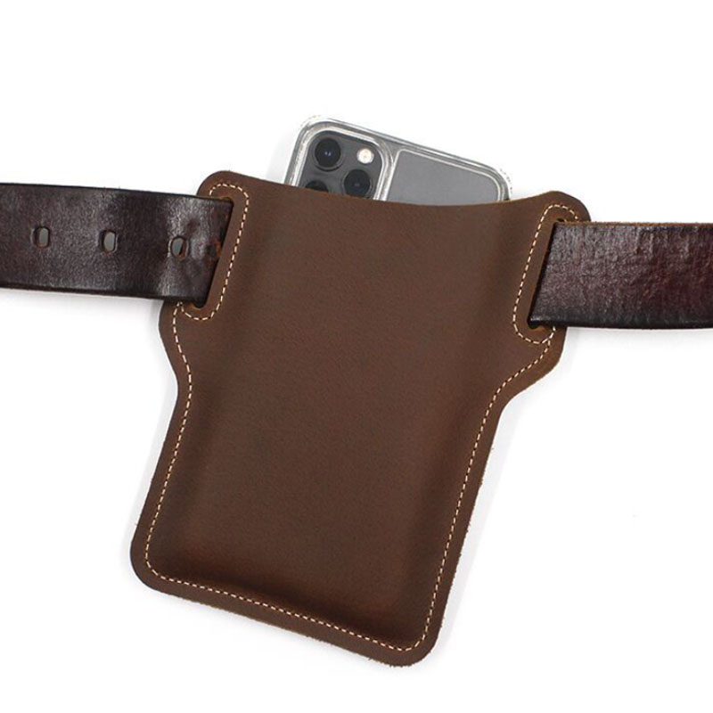 Men’s Phone Belt Holder – Genuine Leather Pouch for 6"–6.8" Phones