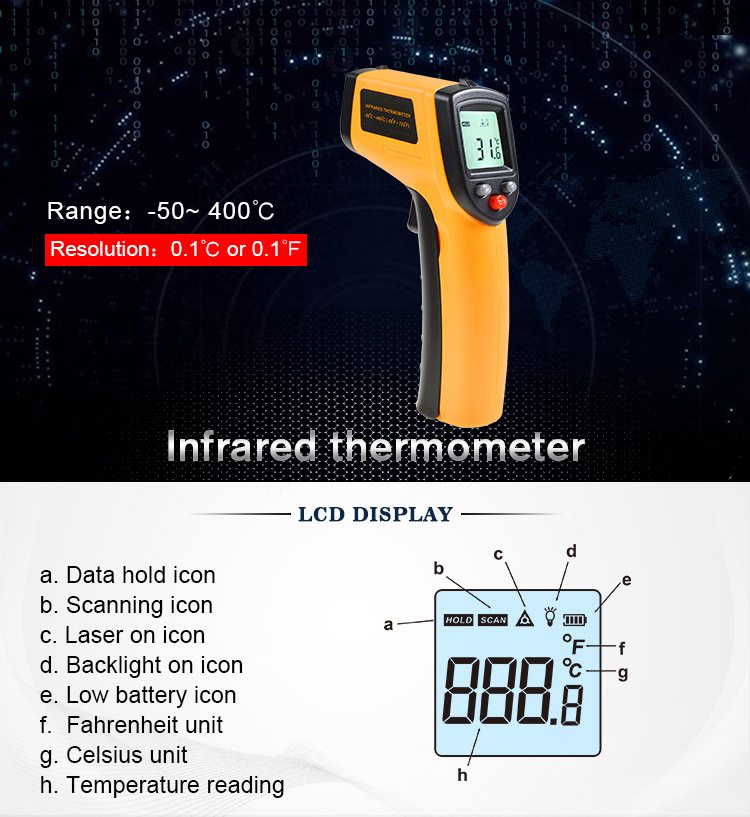 Precise Non-Contact Measurement: Safely measure temperatures without touching the object, providing a simple and effective solution for everyday and industrial tasks.