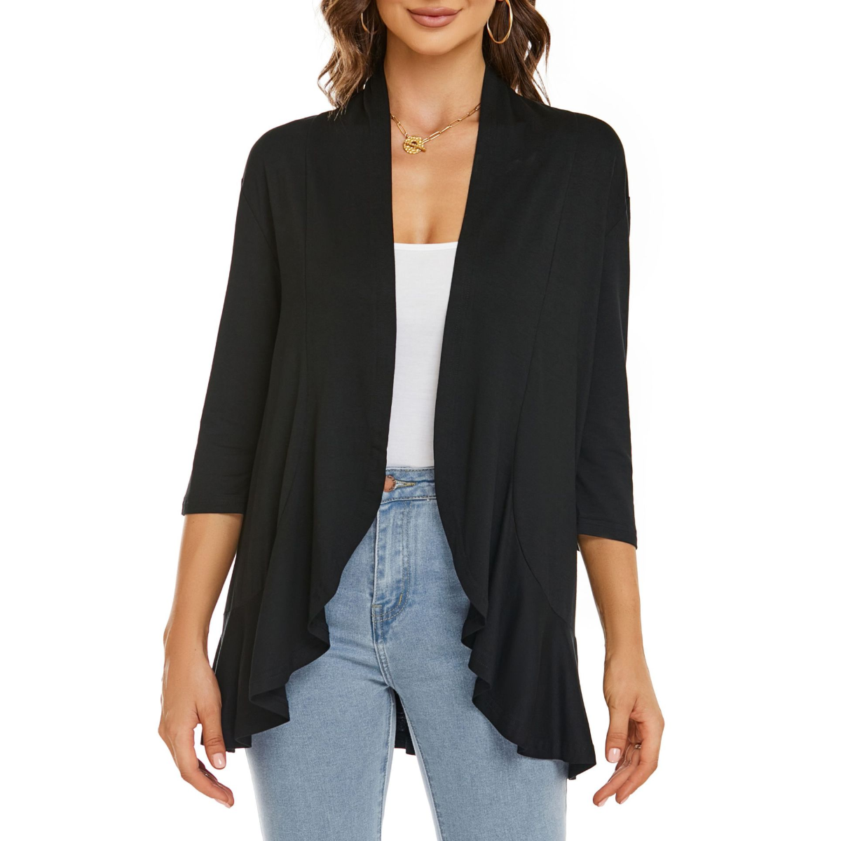Our LadiesThree Quarter Sleeves Ruffles Open Front Cardigans are your