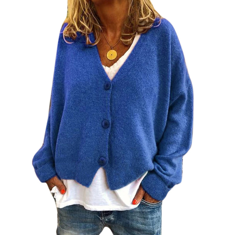 Long Sleeve Cable Knit Ladies Sweater Open Front Cardigan Button Loose