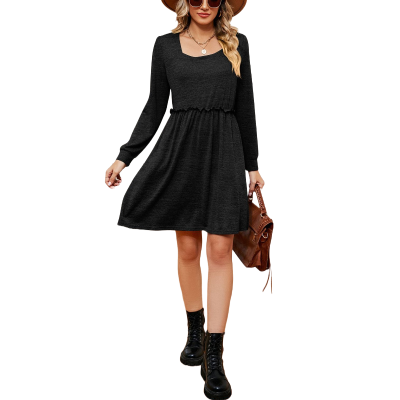 • Embrace timeless elegance with our Long Sleeves Square Neck Short Dress, designed for a chic and sophisticated look.