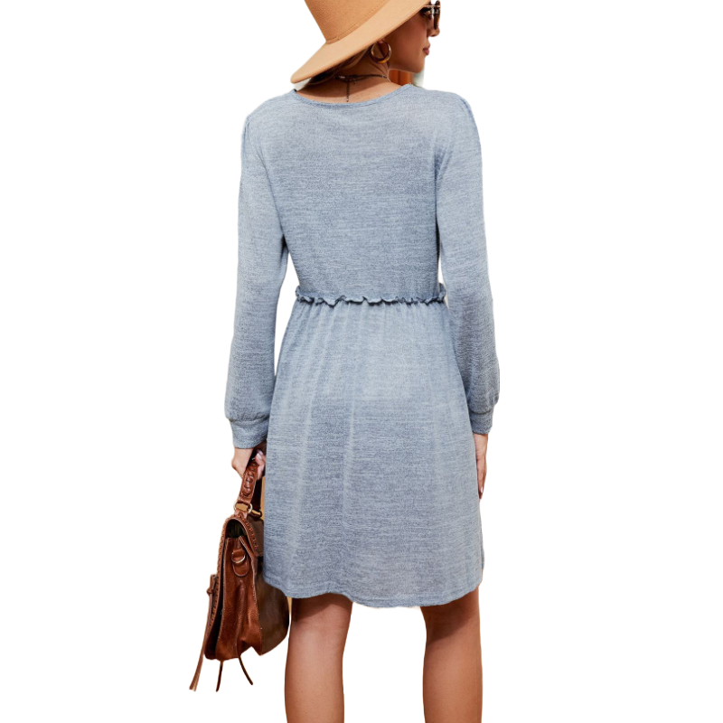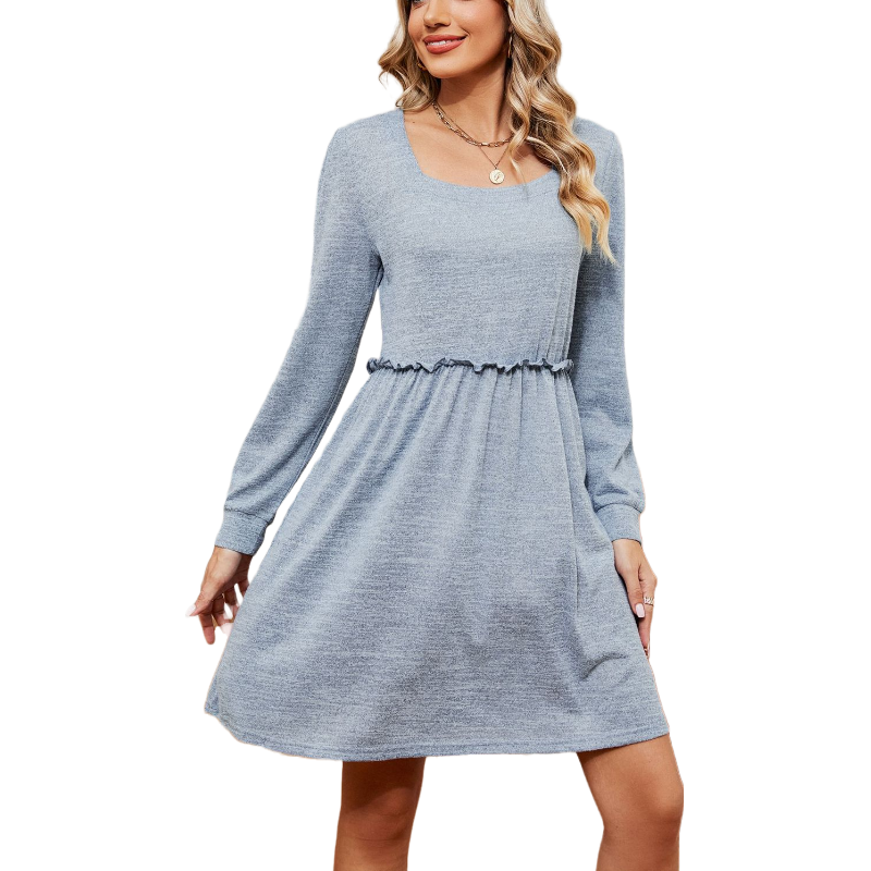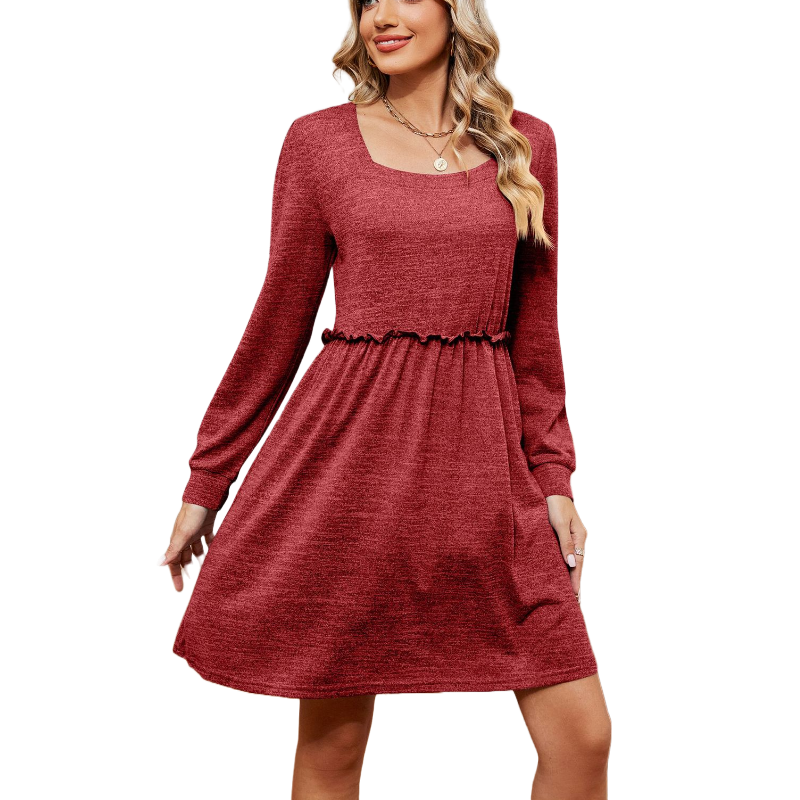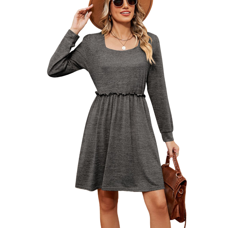 Long Sleeves Square Neck Short Dress