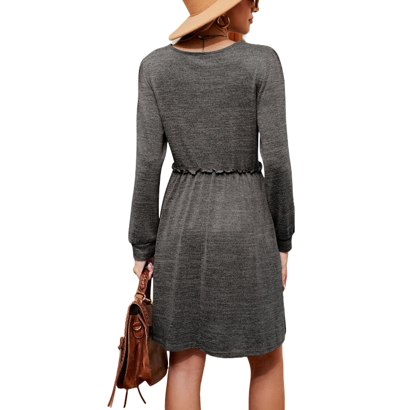 • Crafted from a comfortable blend of 65% Rayon, 30% Polyester, and 5% Spandex, this dress ensures a soft feel with a touch of stretch for ease of movement.