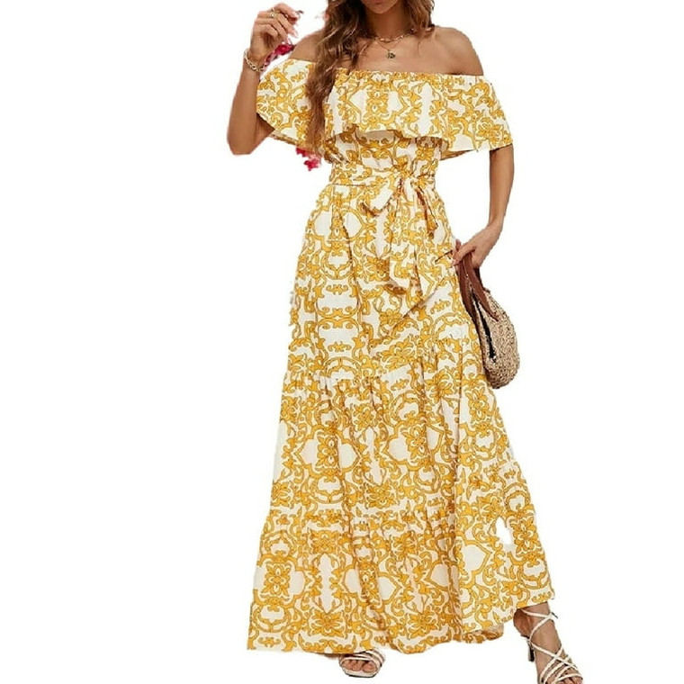 Turn heads with the Off Shoulder Flouncing Swing Dress, designed with a flattering off-the-shoulder neckline and a playful flouncing hem. Perfect for summer days, parties, or evening strolls, this dress blends charm and comfort for any occasion.