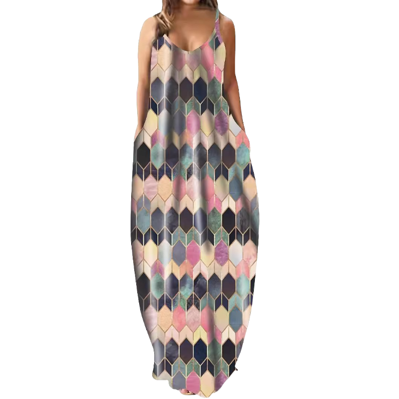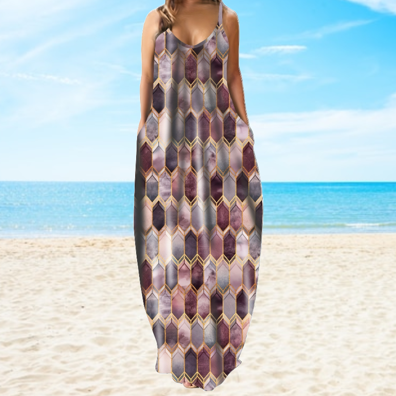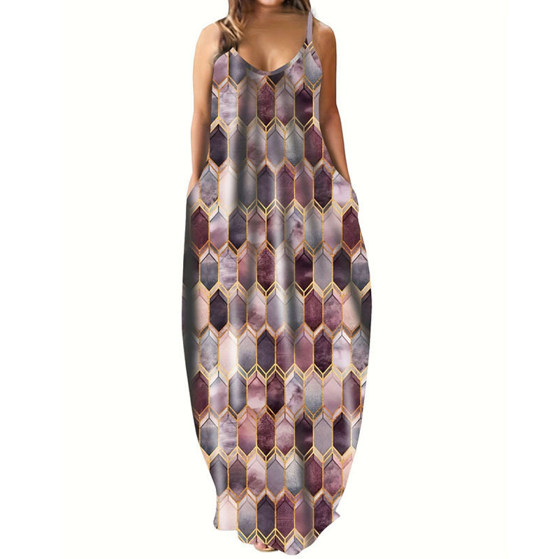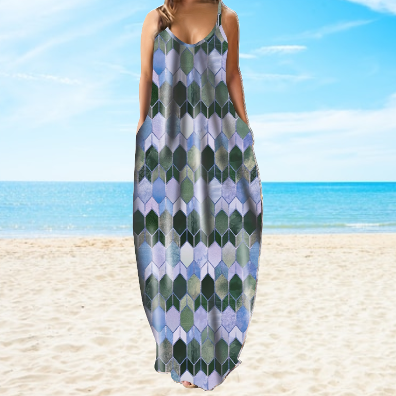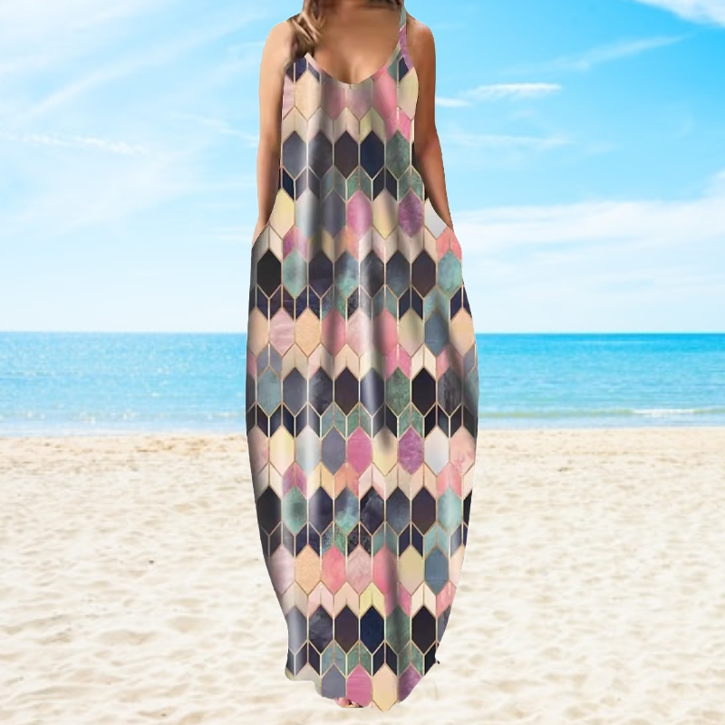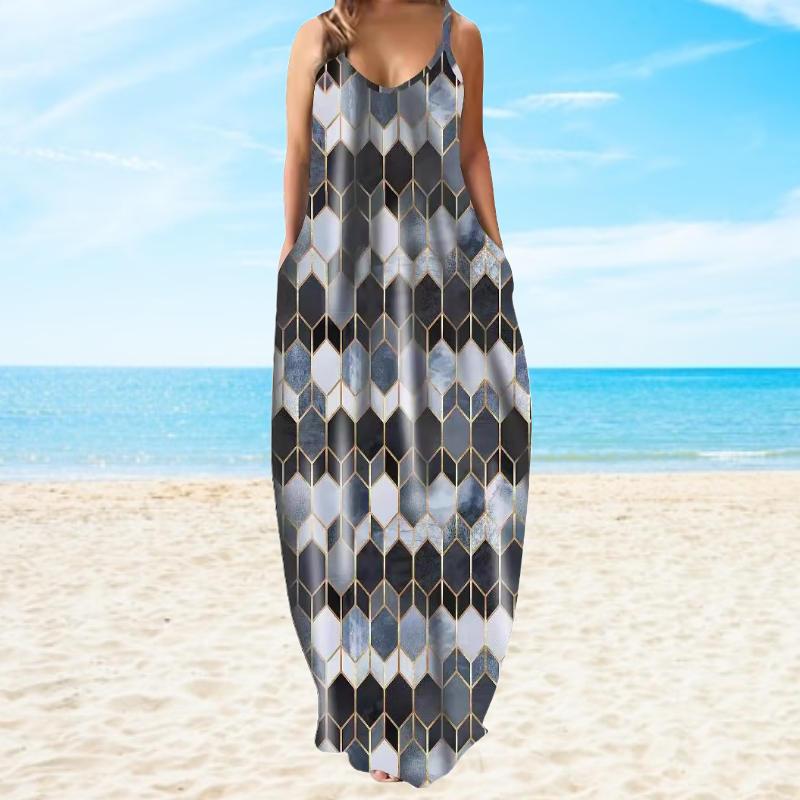 • Step into effortless style with our Pattern Camisole Dress with Pockets, a delightful combination of comfort and flair that enhances your summer wardrobe.