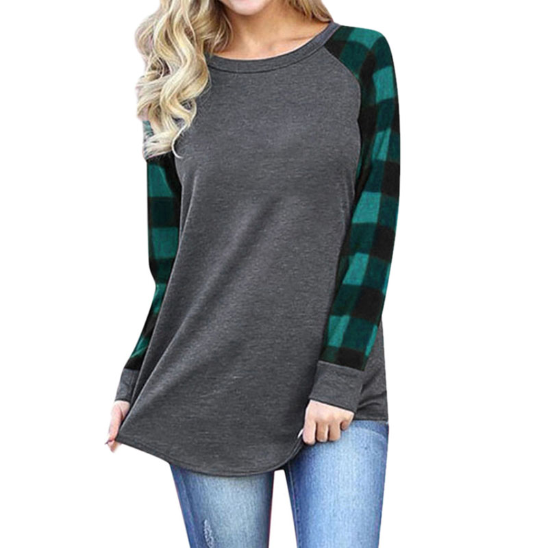 contrasting sleeve colors—red, green, khaki, or blue—this blouse offers