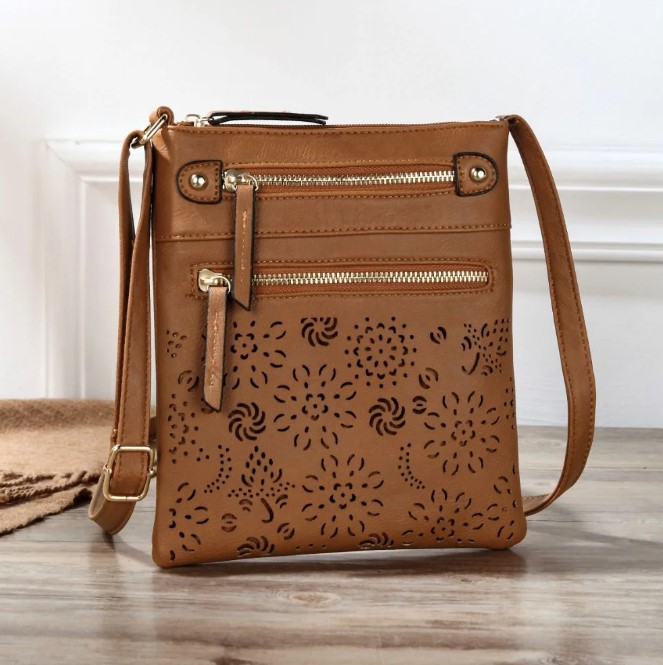 bag! Featuring an elegant laser-cut floral design, it’s
