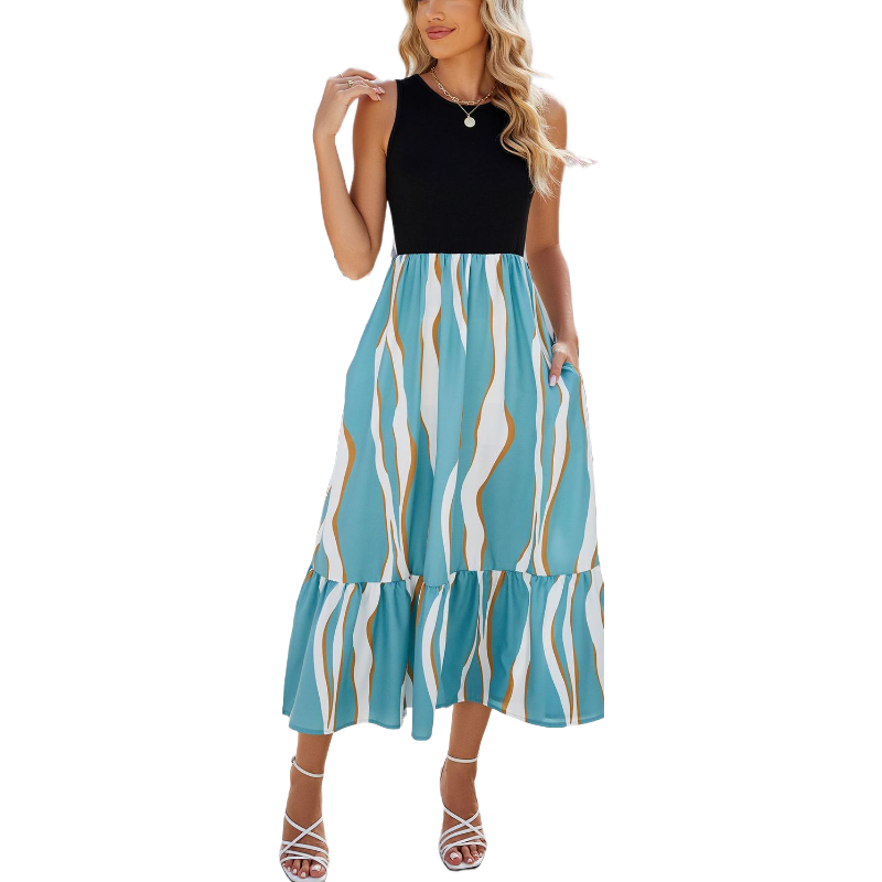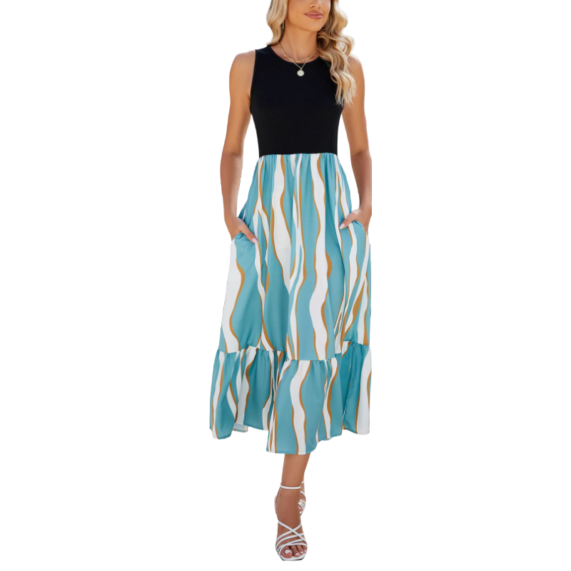 Ripple Printed Dresses Sleeveless Version