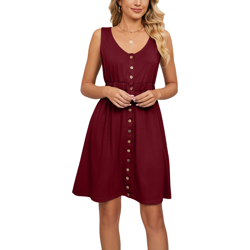 Discover effortless style with our Sleeveless Buttons Dress with Pockets,designed for both comfort and functionality.