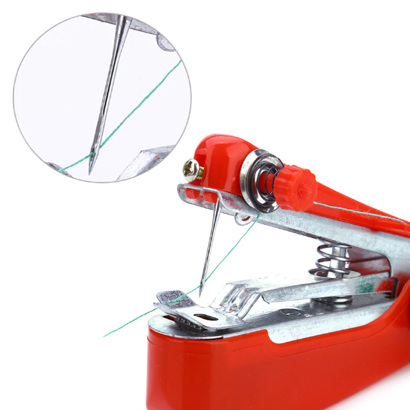 Hand-held sewing machine for home / travel use Easy enough for beginners, versatile enough for experts Perfect for crafts Small, handy, lightweight, cordless and easy-to-carry design Can automatically adjust the cloth and the consistence between the pins Compact and lightweight Built for long term use Practical and easy to use Manual operation: eco-friendly and user-friendly, stitching with speed as you like No need of battery or power supply, just by hand Fix directly without taking off your clothes or taking down the curtain Material: Stainless steel Dimension: 11cm x 7cm x 4.5cm Colour: Red
