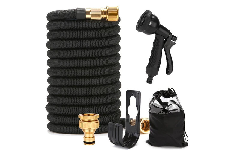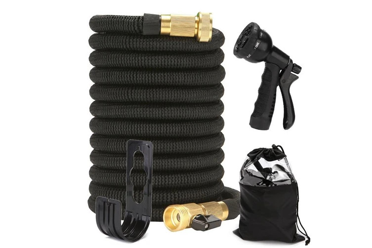 - When water pressure is turned on, the length of our flexible garden hose expands to 50ft in seconds, and quickly shrinks back to a compact size for storage when the water recedes.