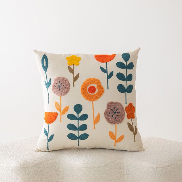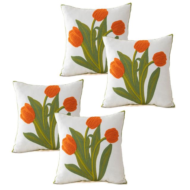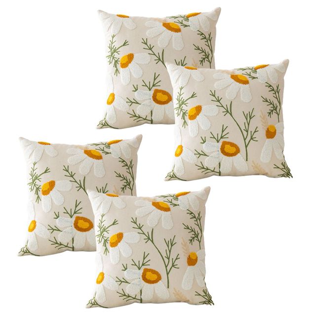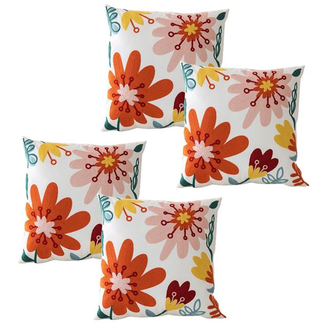 Towel Embroidered Flower Throw Pillow Cover - 4 Packs