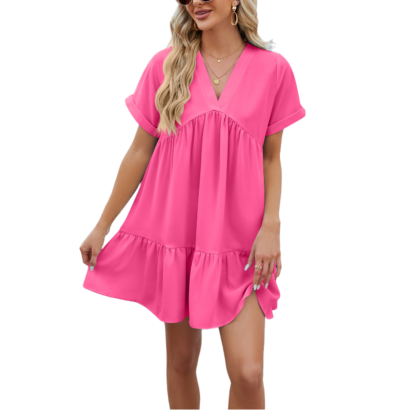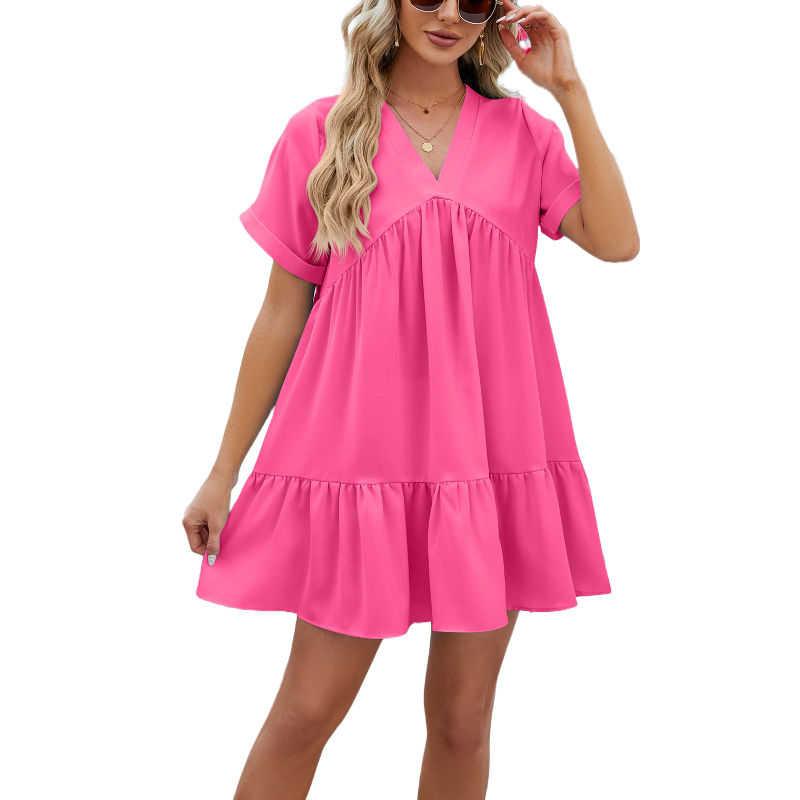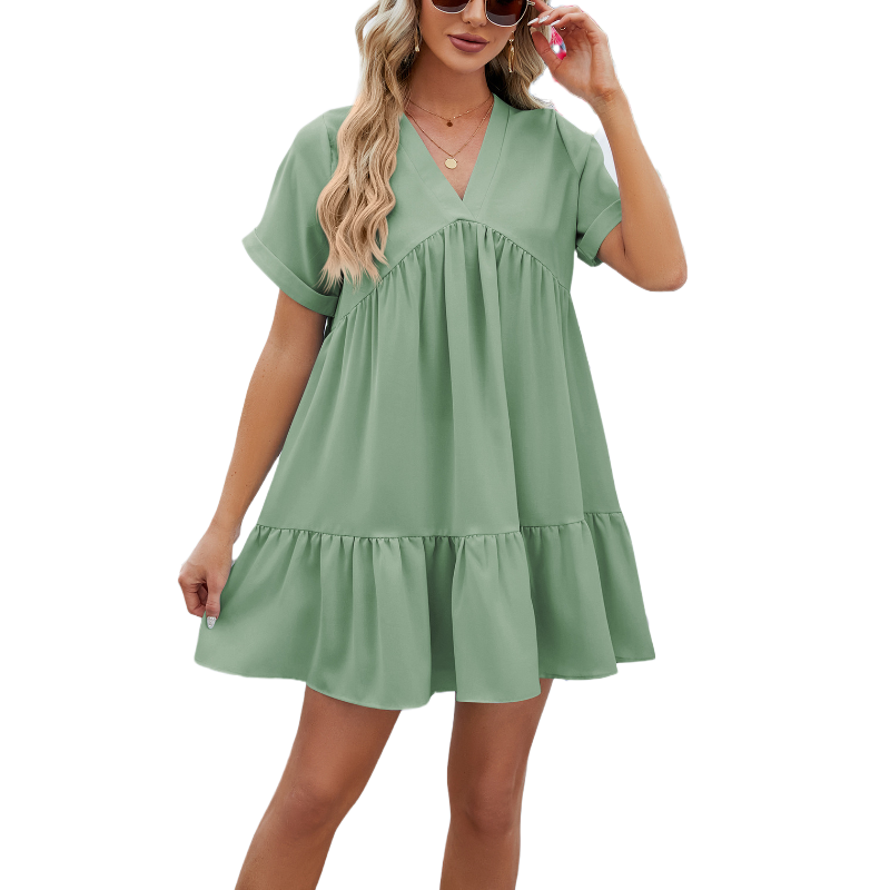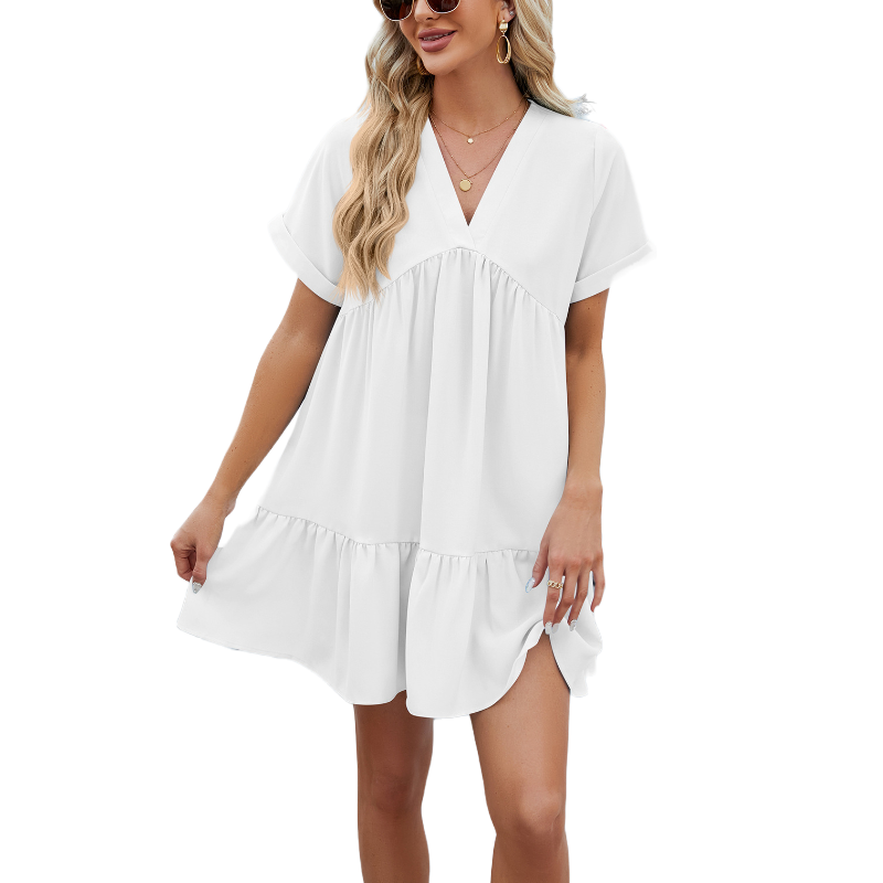 Elevate your wardrobe with our charming V-neck Babydoll Dresses, meticulously designed to combine comfort and style for any occasion.