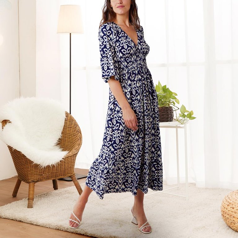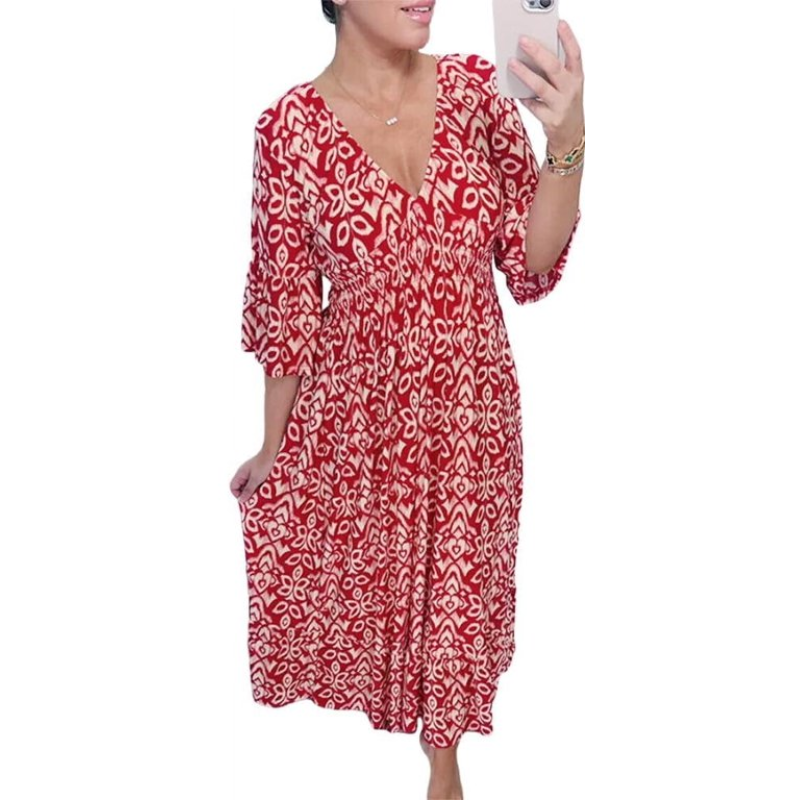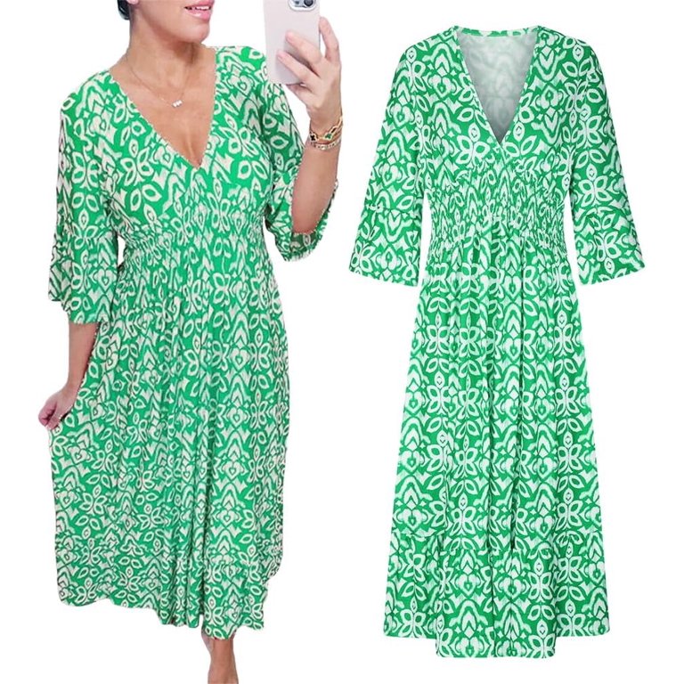 Step into summer with our V Neck Loose Printed Beach