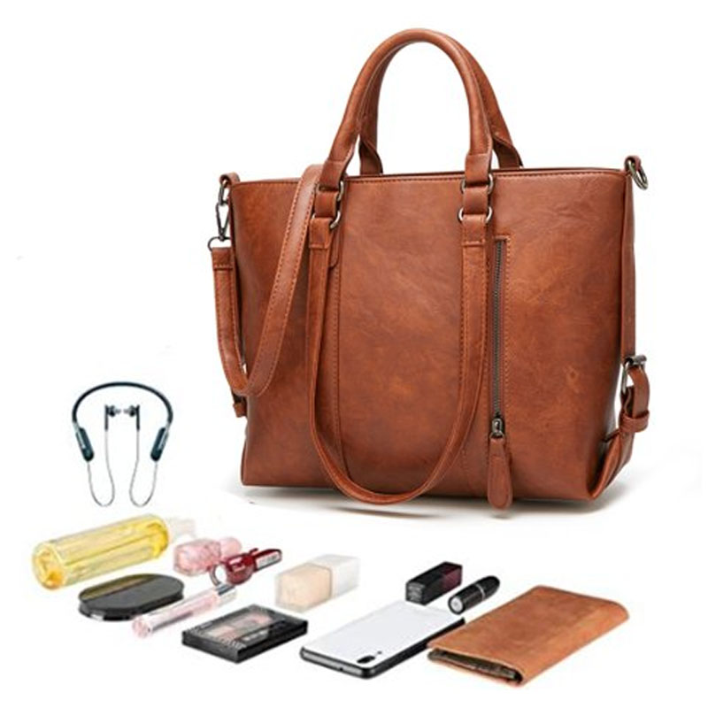 The zipper closure shoulder bag has a large capacity