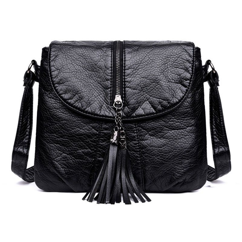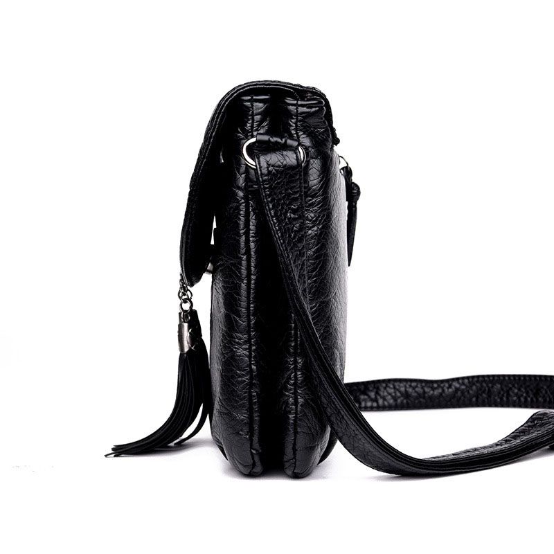 Washable Vegan Leather Tassal Crossbody Bag