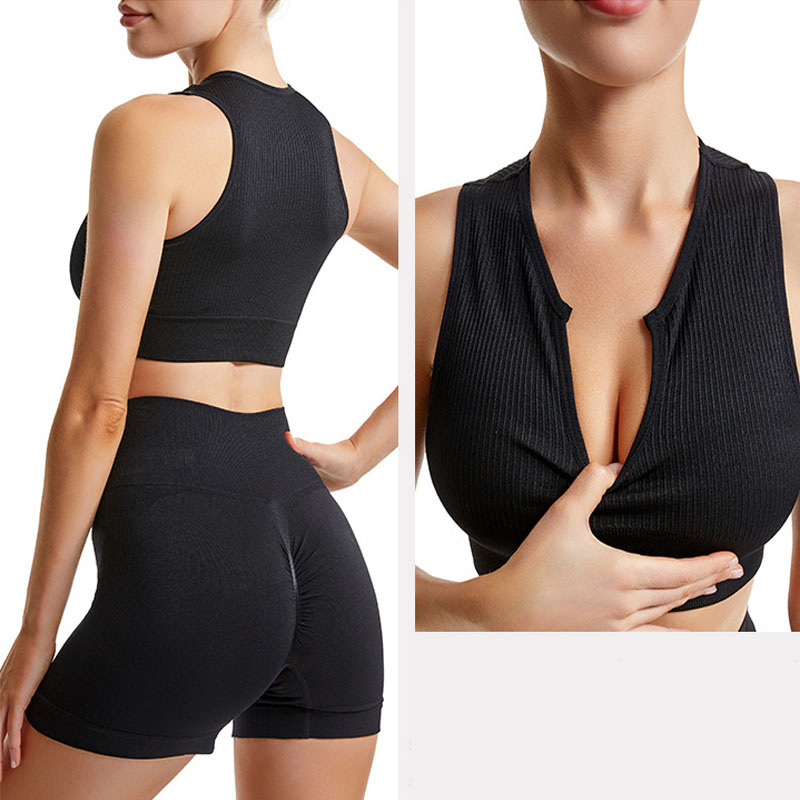 Women’s 2-Piece Ribbed Seamless Workout Outfits – 2 Pack