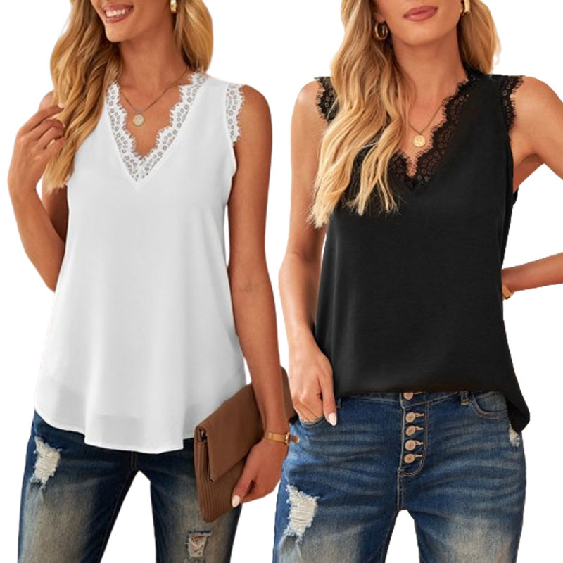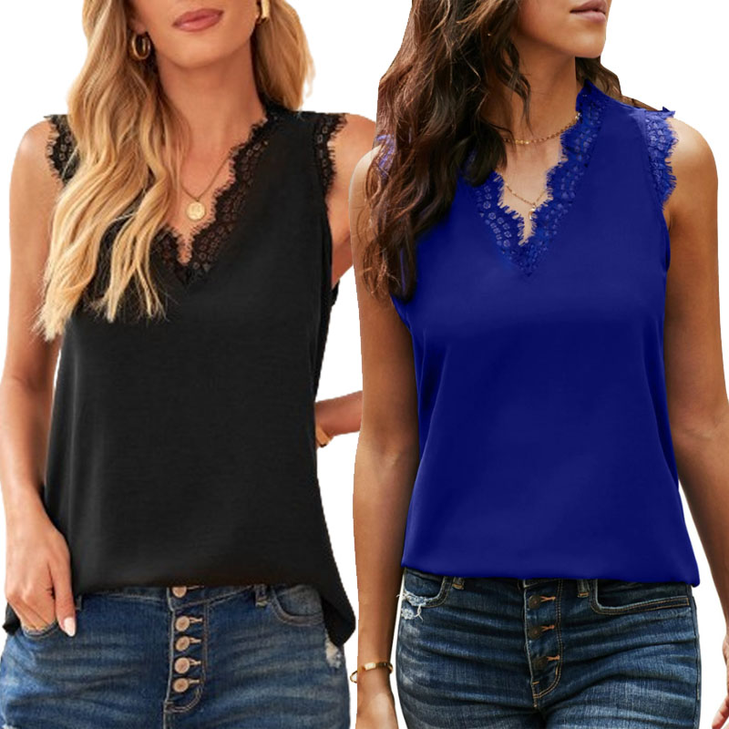 This Women’s Sleeveless Lace Trim Tank Top set includes