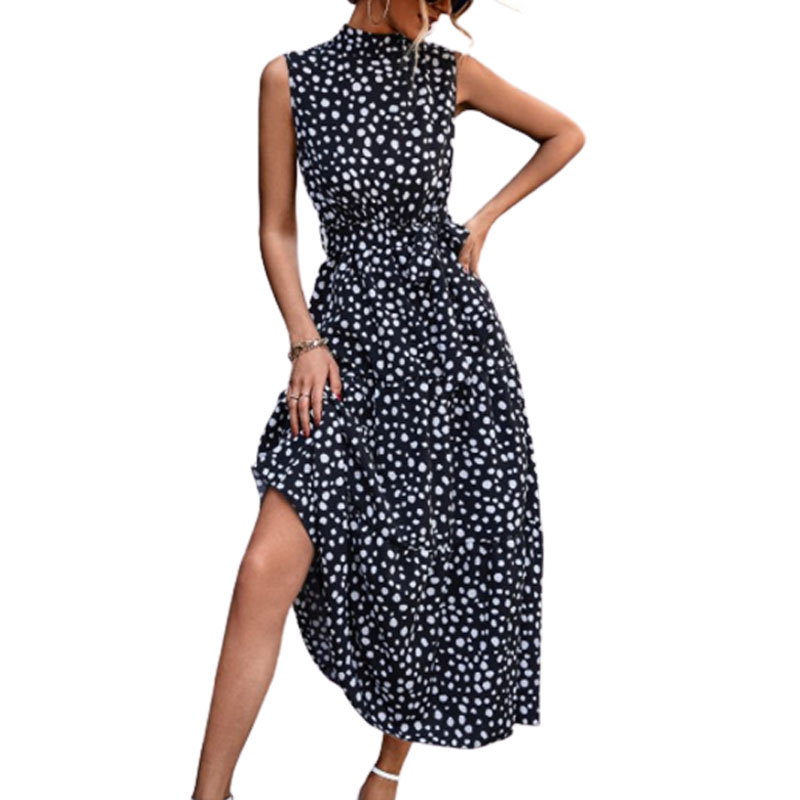 Wrap Casual Flowy Long Dress with Dot Print—a beautiful