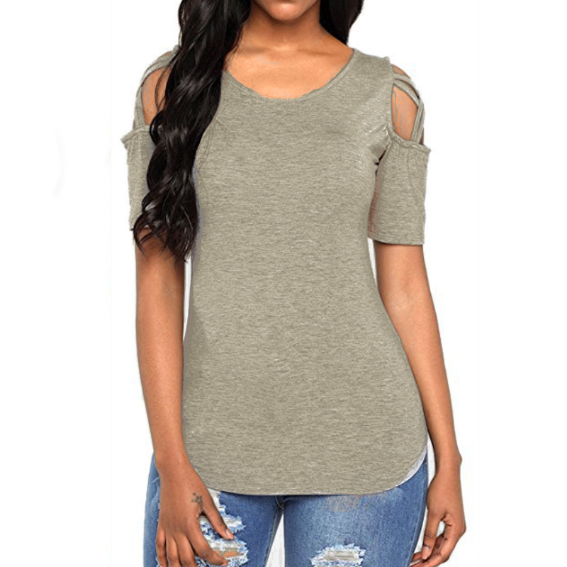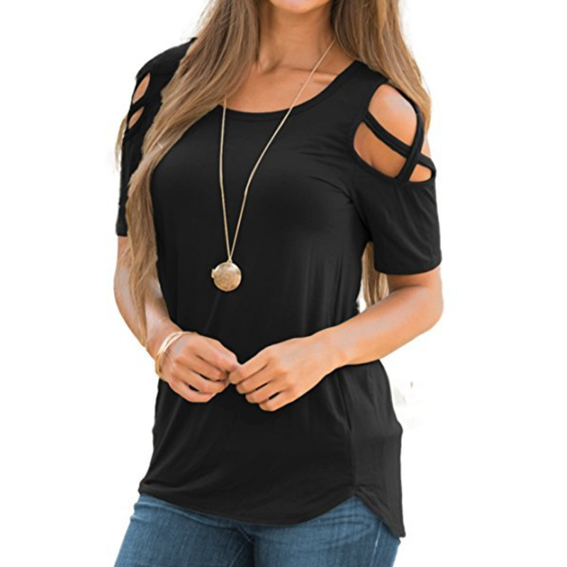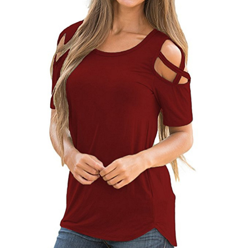 Womens Loose Strappy Cold Shoulder Tops Basic T Shirts