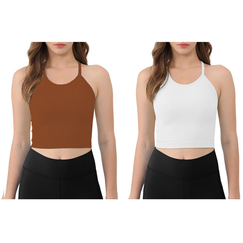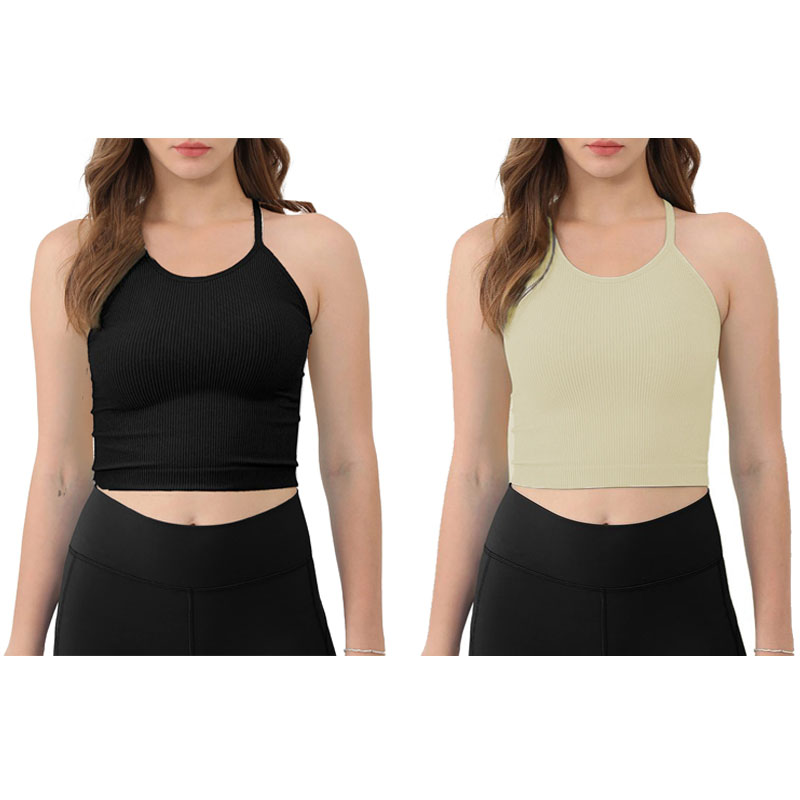 Women's Seamless Rib-Knit Crop Tank Tops - 2 Pack