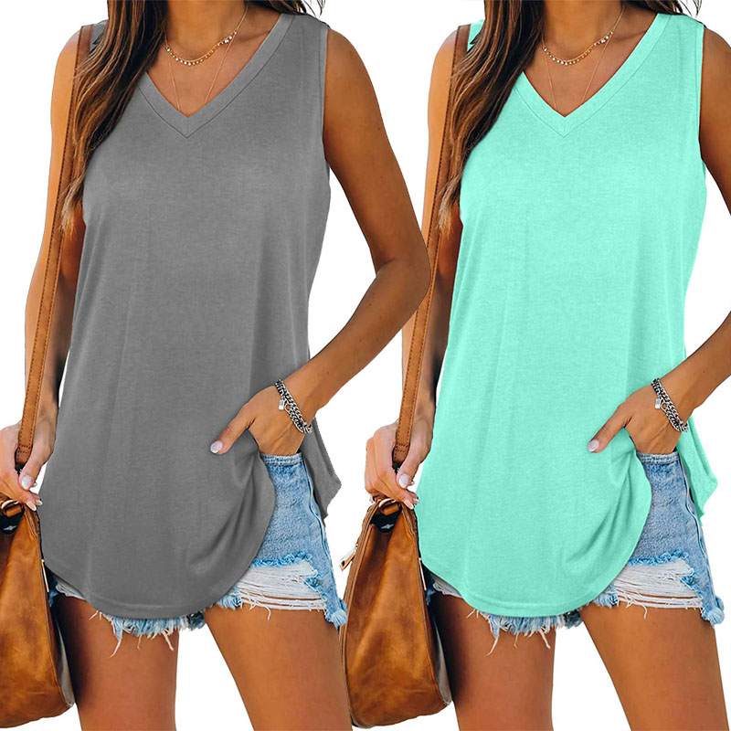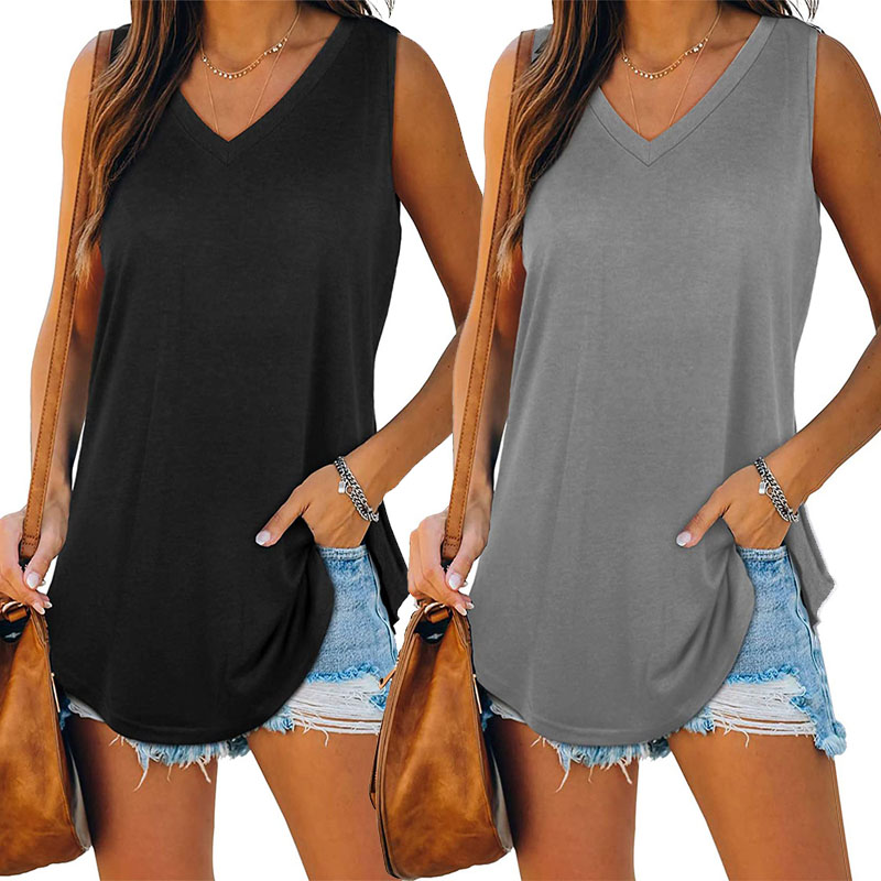Womens V Neck Flowy Sleeveless Tank Tops - 2 Pack