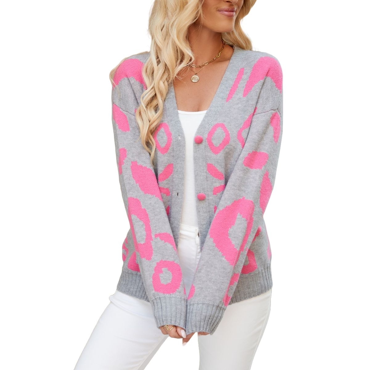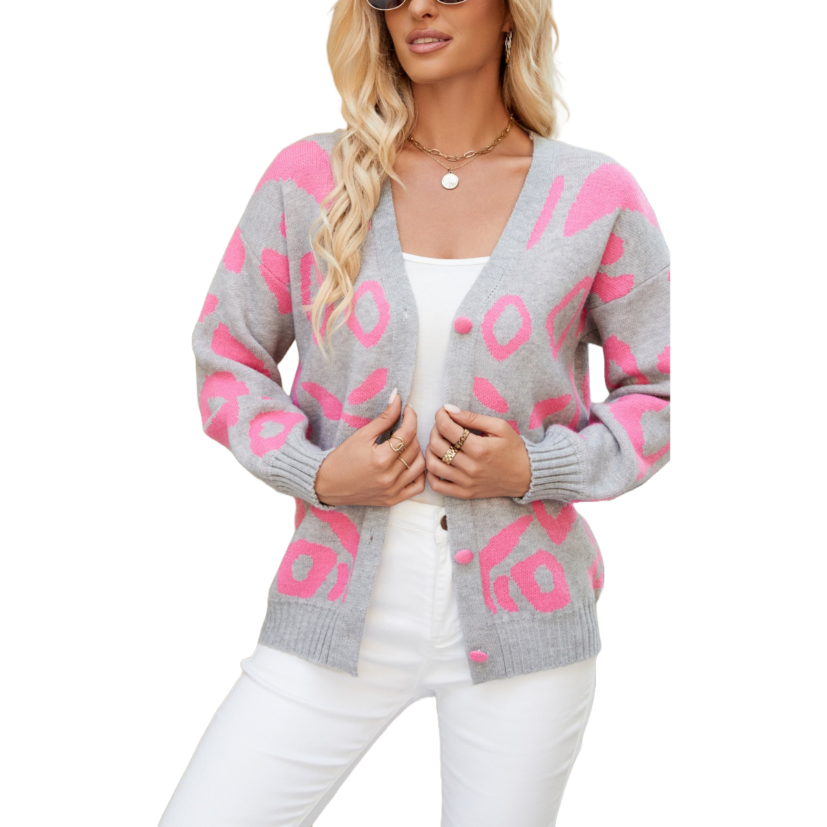 The V-neckline and button-up closure enhance the cardigan's chic appeal,