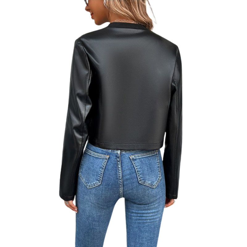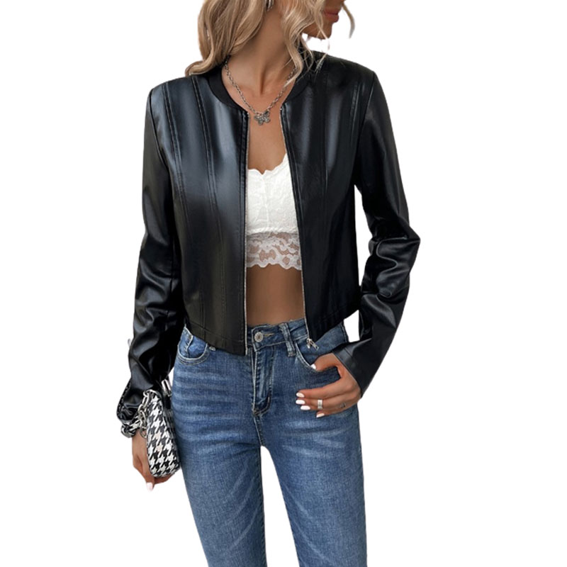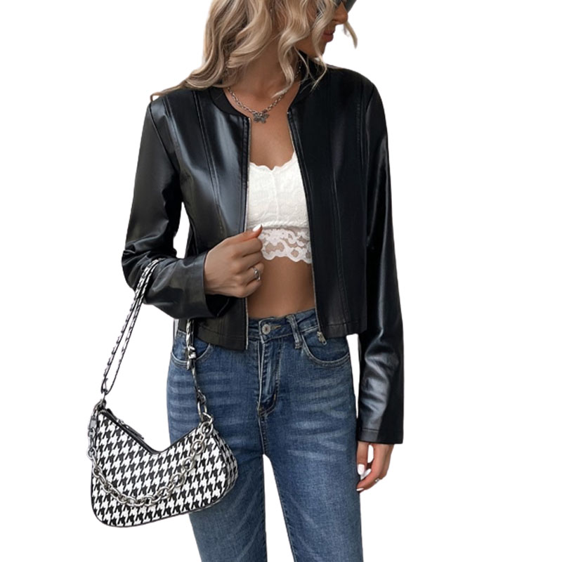 Womens Vegan Leather Jacket Slim Fit Zipper Closure